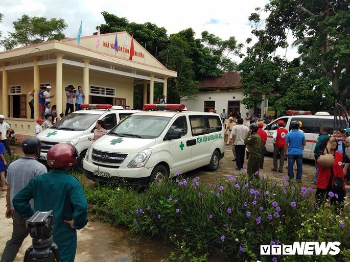 Các xe cứu thương chở thi thể nạn nhân tập trung tại nhà văn hoá thôn Lương Điền.