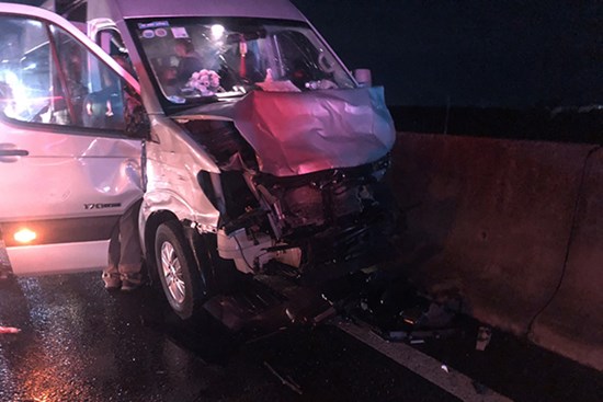 Xe 16 chỗ đâm taxi trên cao tốc Hà Nội – Hải Phòng, nhiều người bị thương