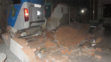 Xe khách đâm sập nửa bức tường nhà ven đường |