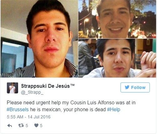 Khuôn mặt Alfonso xuất hiện trên Twitter sau vụ khủng bố tại Nice.