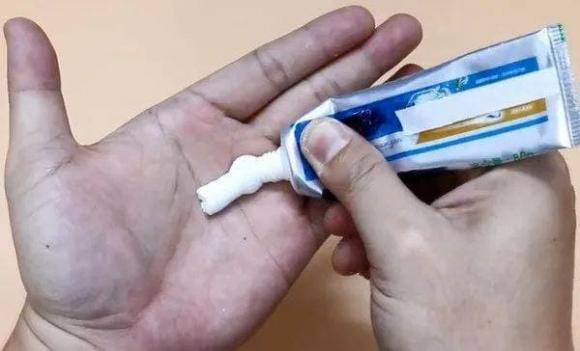 Chúng ta có thể bóp một ít kem đánh răng lên đó và dùng tay thoa đều.