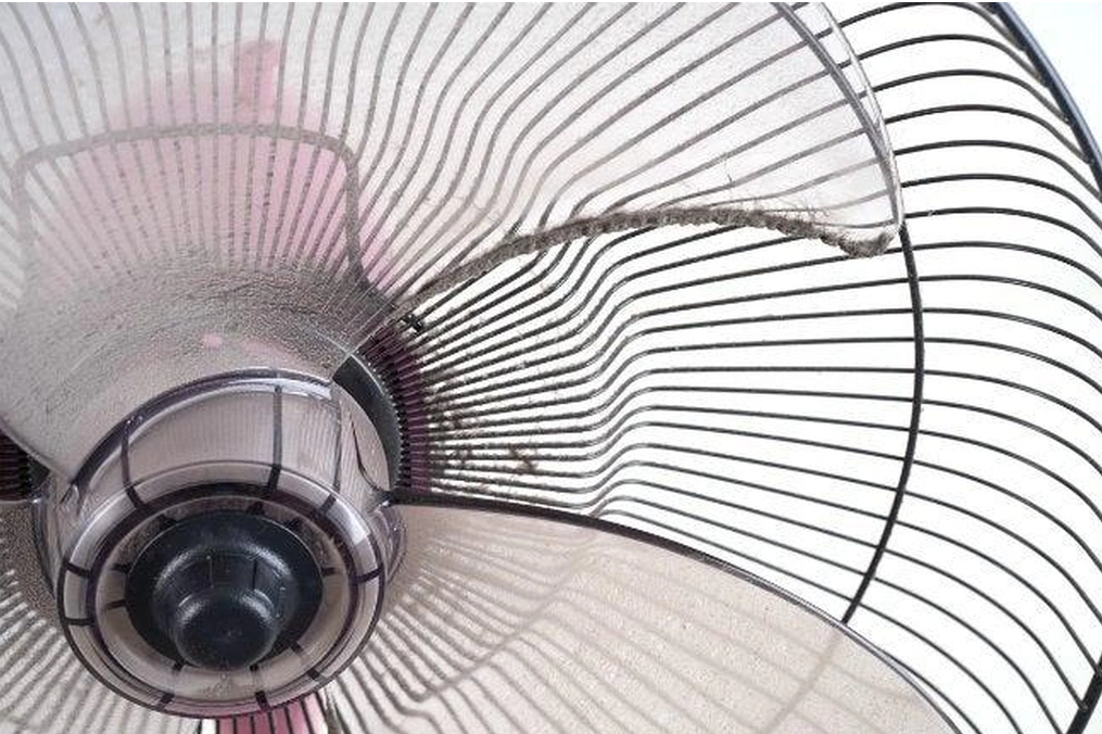 Bụi bám trên cánh quạt và lồng quạt (Ảnh: Recommend).