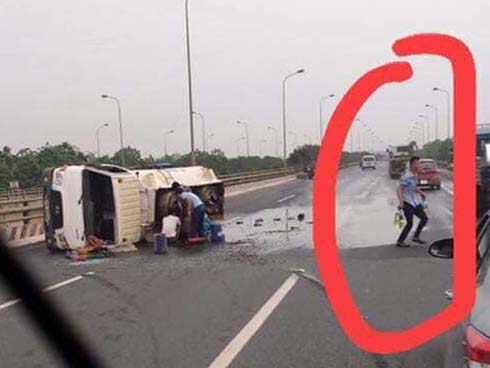 Còn tài xế xe tải, khi sự cố xảy ra, anh không hề hay biết. Chạy đến gần cầu ông Lãnh có người nhắc tài xế mới biết sự việc và quay lại hiện trường thì mọi người đã "hôi" hết sạch bia. Tài xế đành buồn bã bỏ về.