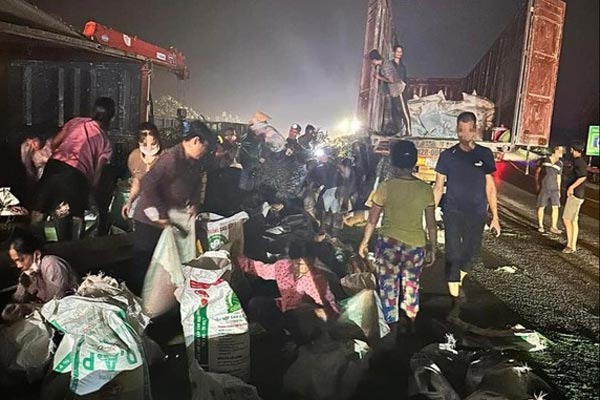 "Bốn tấn vải buộc phải hạ hết khỏi thùng bỏ lại bên đường để chuyển xe đến gara. Chúng tôi nghĩ sẽ không sao, vậy mà khi quay lại, toàn bộ hàng hóa đã biến mất, không còn 1 thùng vải nào nguyên vẹn. Chỗ xe dừng chỉ còn bãi đất trống, vải rơi rải rác", chị Lịch chia sẻ.