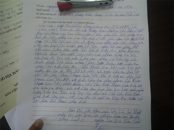 Trong biên bản lời khai, tài xế Toàn cho biết mình không vi phạm luật giao thông nên lái xe bỏ đi. Trong lúc xô xát, anh ta cũng bị một cán bộ CSGT đánh.