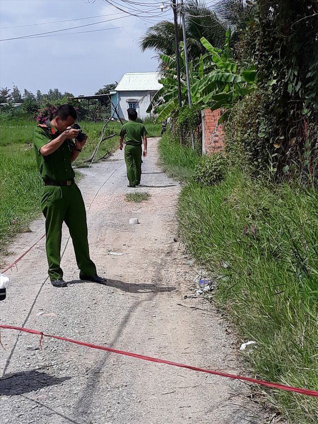 Lực lượng cảnh sát hình sự công an tỉnh đang điều tra hiện trường vụ án, nơi anh Sơn bị cướp, giết.