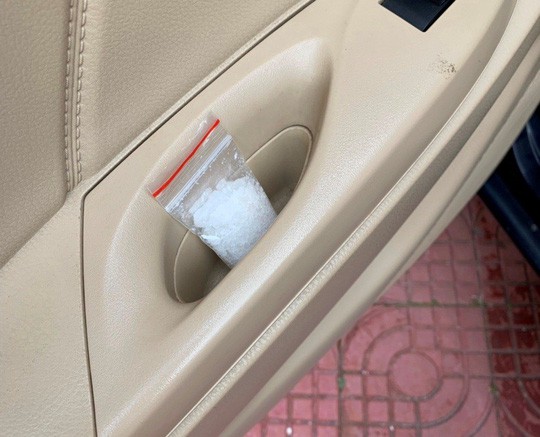 Kiểm tra trên xe con, lực lượng công an phát hiện 1 gói ma túy đá cùng các vật dụng sử dụng ma túy. Kiểm tra nhanh nhanh tại hiện trường, lực lượng CSGT xác định đối tượng dương tính với 2 loại ma túy, người trong tình trạng lơ mơ do đang phê ma túy.
