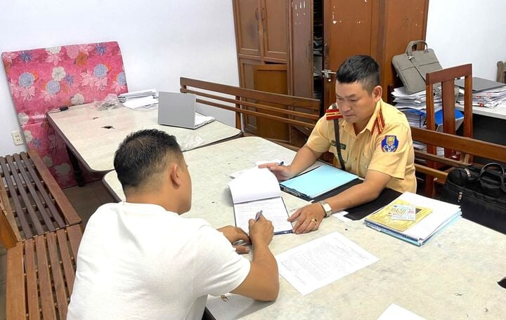 Làm việc với lực lượng chức năng, tài xế khai tên Đặng Quốc Tài và không xuất trình được giấy phép lái xe.