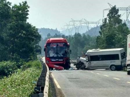 Hai xe khách đang lưu thông ngược chiều bất ngờ đấu đầu vào nhau, khiến tài xế chết tại chỗ, 2 hành khách bị thương nặng.