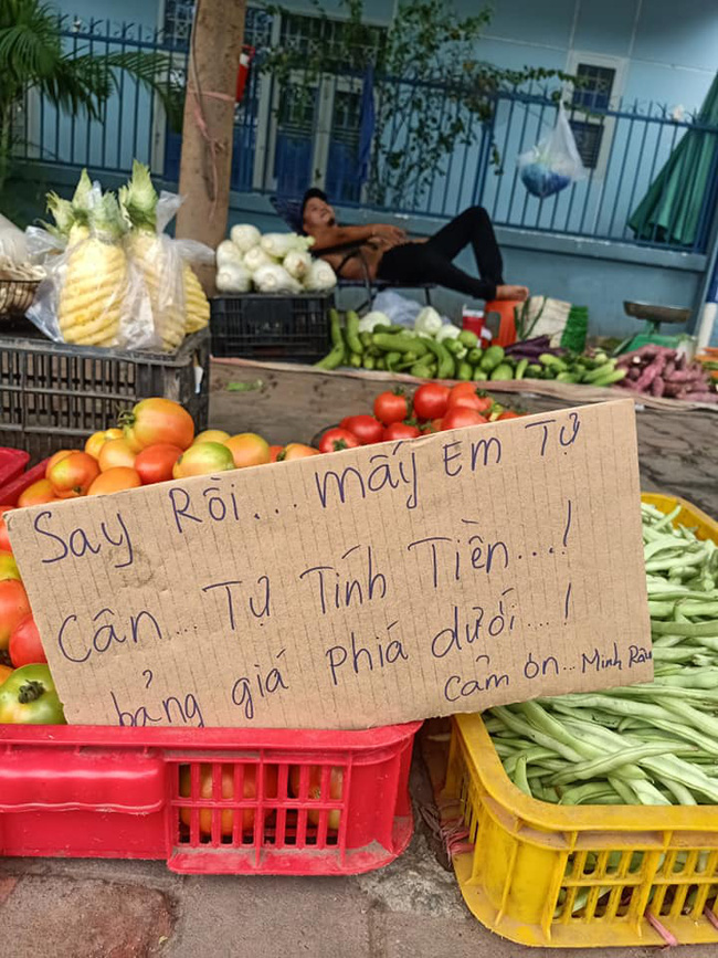 Mới đây dân mạng được phen giải trí với hình ảnh người đàn ông say rượu, bỏ mặc chuyện buôn bán, mắc võng nằm ngủ ngon lành. Anh ta không quên gửi lời nhắn đến khách hàng để không ai làm phiền khi đang say giấc: "Say rồi. Mấy em tự cân tự tính tiền. Bảng giá phía dưới. Cảm ơn".