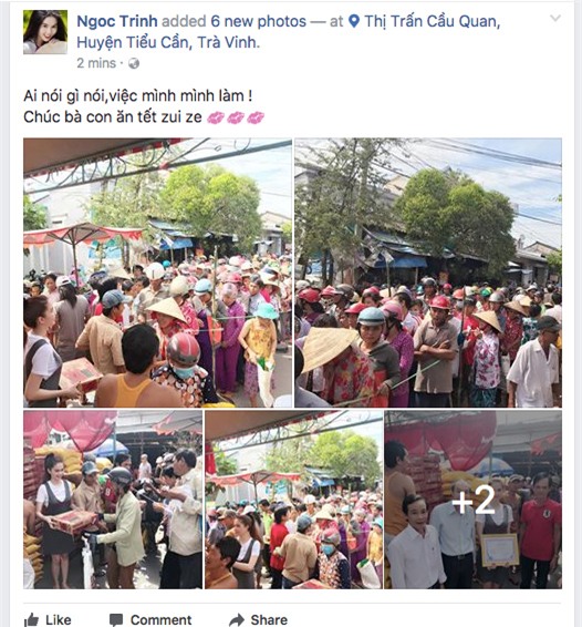 Hành động đẹp của Ngọc Trinh nhận được nhiều sự ủng hộ của cư dân mạng.
