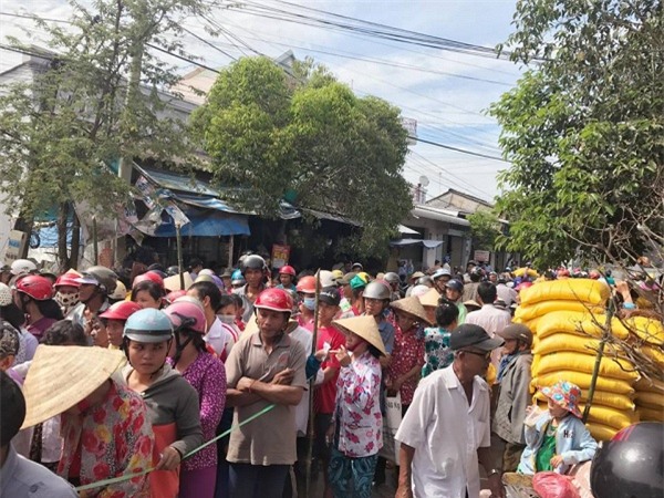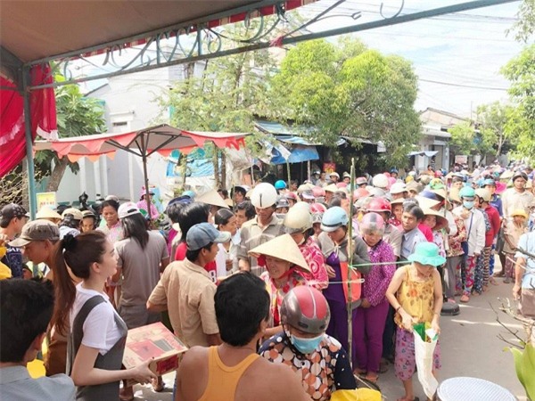 Rất đông bà con ở Trà Vinh đã xếp hàng dài đến nhận quà Tết từ Ngọc Trinh.