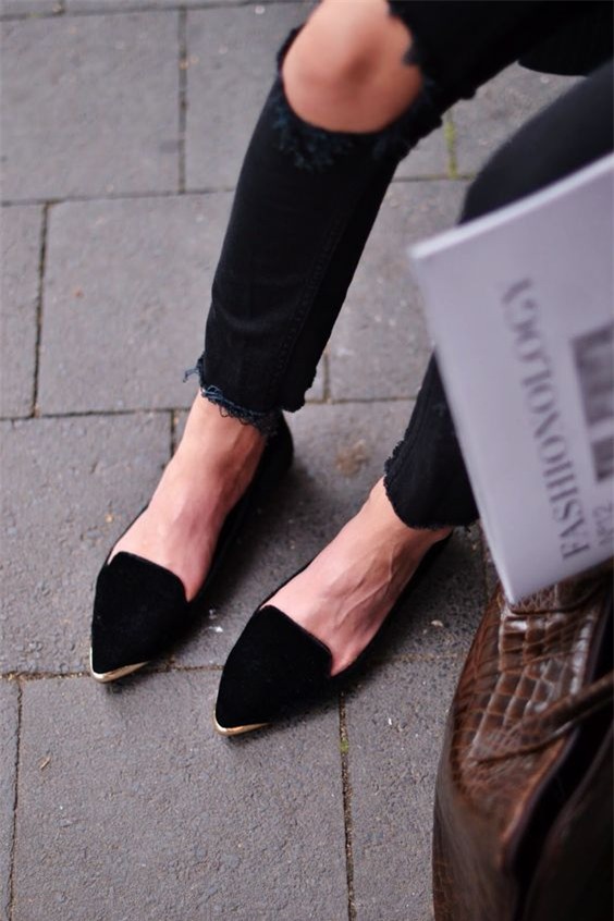 Bạn muốn đôi chân trông dài và thon hơn nhưng không muốn bị đau chân? Thử thay thế đôi giày nệt mũi tròn bằng những thiết kế mũi nhọn và kết hợp cùng chân váy, áo sơ mi, bạn sẽ là quý cô quyến rũ nhất với đôi chân thon thả.