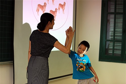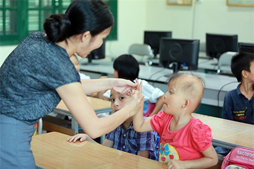 Người giáo viên thứ 2 phóng viên tiếp xúc là cô giáo Nguyễn Thị Kim Oanh (36 tuổi) hiện đang là giáo viên lớp khiếm thính.