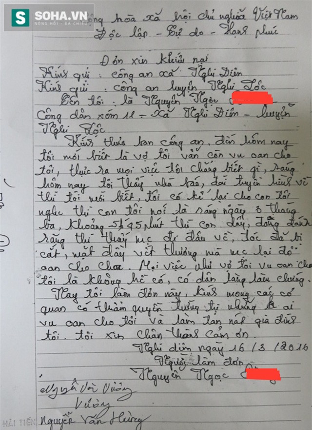 Những ngày qua, thông tin về việc chị Nguyễn Thị Hồng (SN 1978, trú xóm 11, xã Nghi Diên, Nghi Lộc, Nghệ An) làm đơn tố cáo đến cơ quan chức năng về hành vi bạo hành của chồng đối với mình khiến dư luận rất quan tâm.