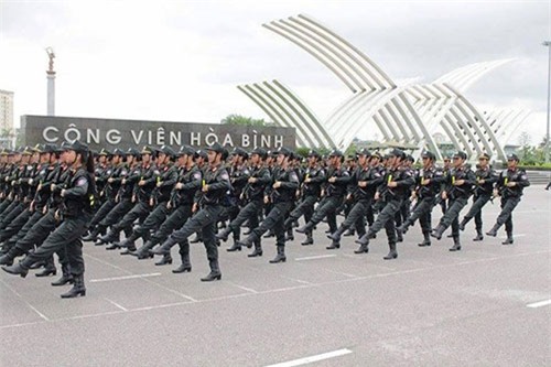 Phạm Tuấn Sang - chiến sĩ tham gia khối Cảnh sát đặc nhiệm - hóm hỉnh cho biết: “Khi chúng tôi đi qua các con phố, được các cô bác động viên rất nhiều. Nhất là các bạn nữ hét to cổ vũ khiến anh em cả đội quên mưa gió, vất vả”.