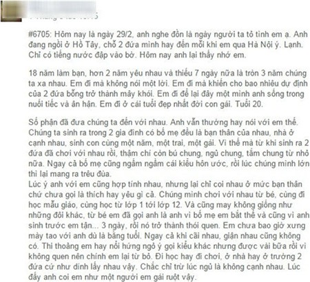 “Ba năm đã qua. Nhưng anh vẫn nhớ em, nhớ giọng nói của em, nhớ mỗi khi em cười, nhớ những lần chúng mình bên nhau ấy. Anh còn lưu toàn bộ số ảnh mà mình chụp, anh tìm cả những bức ảnh hồi nhỏ nữa, rồi cả những cái clip nhắng xít của 2 đứa”.