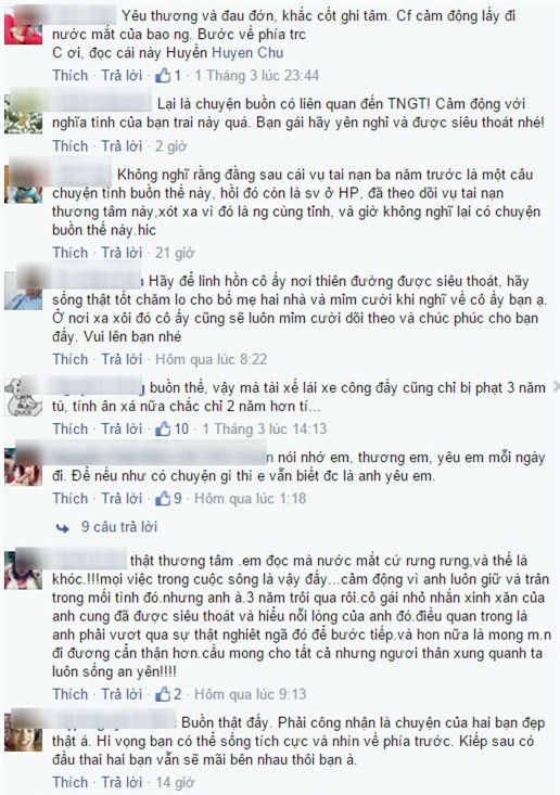 “Rươm rướm nước mắt luôn”, “đọc mà nhòe nước mắt”, “nhớ vụ tai nạn này. Không ngờ còn cả 1 chuyện tình buồn đằng sau nó”… là tâm trạng chung của nhiều người về câu chuyện tình của chàng trai.