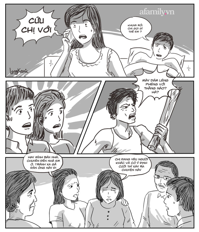 Chúng tôi lái xe về quê cũng hơn 1 tiếng sau. Trước nhà, anh rể cũ vẫn đang cầm khúc gỗ, miệng mắng chửi vợ cũ rồi lấy đá ném vào nhà. Trong nhà, chị chồng khóa cửa, bật điện sáng. Có vài người hàng xóm thấy chồng tôi đến thì mới bỏ về. Họ nói anh rể cũ đang gây rối, đe dọa chị chồng tôi, họ sợ anh ta trong cơn say xỉn làm việc không hay nên mới canh chừng giúp.