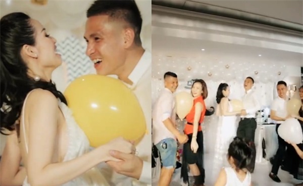 Không gian bữa tiệc được trang hoàng lộng lẫy, với sự góp mặt của đông đủ bạn bè, người thân.