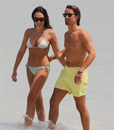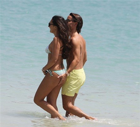 Con gái của tỷ phú Bernie Ecclestone và hôn phu tương lai Jay Rutland hôn nhau đắm đuối, không rời nhau nửa bước trên bãi biển Dubai.