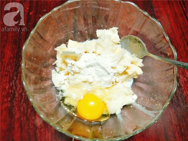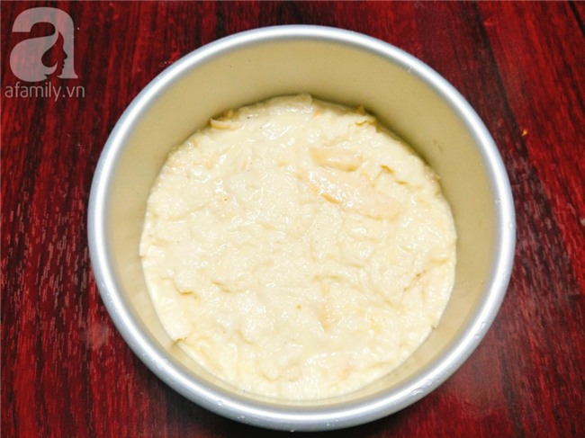 Bơ cho vào bát rồi đem đun cách thủy cho bơ tan chảy. Bánh mì đem xé vụn cho vào âu, thêm nước cốt dừa, sữa tươi, vani, bơ, bột mì, trứng gà, sữa đặc và trộn thật đều nguyên liệu.