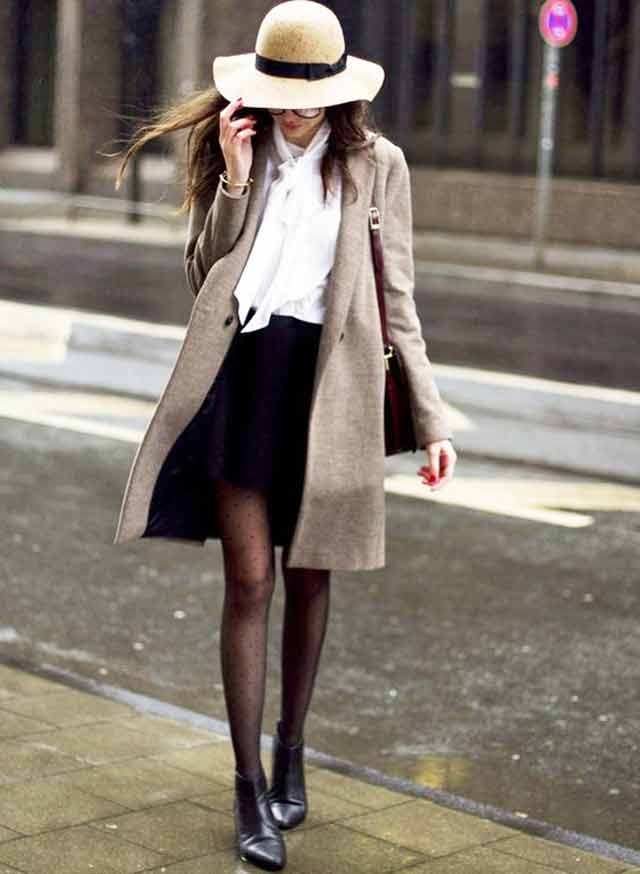 Những chiếc đầm hè sẽ trở nên hợp mùa khi có thêm áo khoác dạ hay jacket da giữ ấm. Những khoảng hở ở cổ và phần chân có thể được xử lý lý khéo léo bằng khăn len hay quần tất. Cách phối đồ áo khoác cùng váy không quá mới mẻ khi những ngày chớm thu, các tín đồ thời trang vẫn thường áp dụng. Nhưng ở mùa đông, sự kết hợp này trở nên thú vị hơn hẳn khi có sự trợ giúp của quần tất và bốt quá gối.