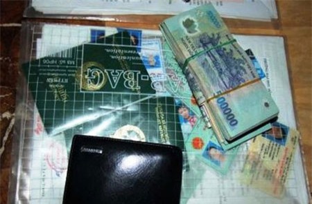 Giấy tờ, chứng minh thư, ví và tiền được cho là của ông Ngô Lê Hà để lại lo hậu sự cho gia đình. |