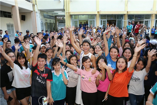 Hoa hậu Hoàn vũ Việt Nam 2017 nhận được sự chào đón nồng nhiệt của học sinh, sinh viên.