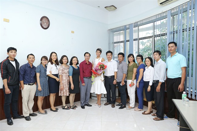 Tân hoa hậu vui mừng khi gặp lại những thầy cô trong trường.