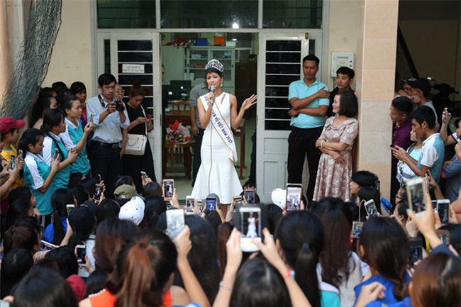 Chiều 8/1, Hoa hậu H’Hen Niê trở lại trường Dự bị Đại học Dân tộc Trung ương Nha Trang - ngôi trường cô từng theo học trước khi trở thành sinh viên của trường Cao đẳng Kinh tế Đối ngoại TP HCM.