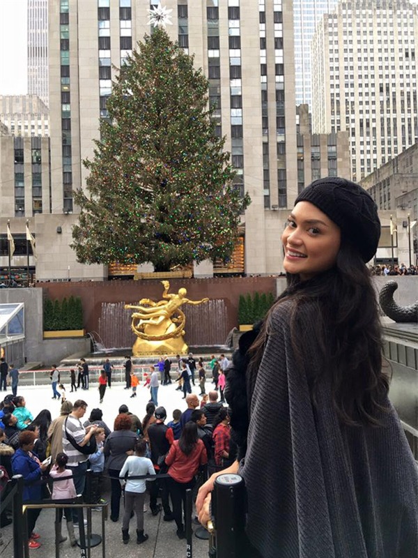 Vừa qua, trang mạng xã hội của cuộc thi Hoa hậu Hoàn vũ đã đăng tải bức ảnh Tân Hoa hậu Pia Wurtzbach đón Giáng Sinh tại một sân trượt băng với cây thông Noel khổng lồ. Kèm theo đó là những tâm sự của Pia, cùng lời động viên chân thành của cô dành cho Hoa hậu Colombia - Ariadna Gutierrez - sau sự cố trao nhầm vương miện.