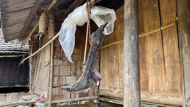 Cái chân bị cắt rời treo trên gác bếp đã 13 năm, buộc bằng sợi chão. Trẻ con, người lớn nhìn thấy hàng ngày thì thấy bình thường, chẳng có gì sợ hãi. Được hun khói mỗi ngày, cái chân của anh Lương giờ chỉ còn mùi bồ hóng chứ không còn mùi người.