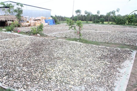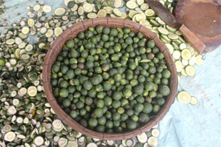 Sân phơi cam non xắt mỏng tại huyện Trà Ôn (Vĩnh Long) |