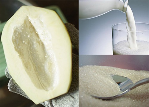 - Cho đu đủ, sữa tươi, đường, đá viên vào máy xay, xay nhuyễn đến khi thu được hỗn hợp đồng nhất thì dừng lại (chừng 1 phút).