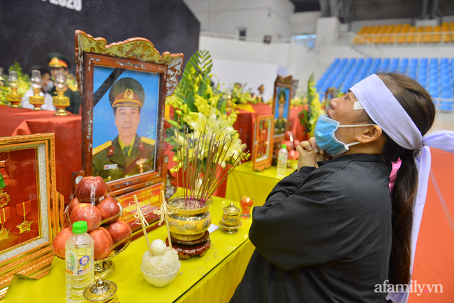 Đoàn người lặng nhìn di ảnh trước giờ làm lễ truy điệu cho các Liệt sĩ
