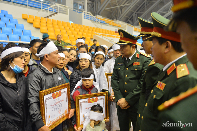Trước khi lễ truy điệu diễn ra, các đồng chí lãnh đạo trong QĐND Việt Nam đã tới động viên thân nhân các gia đình liệt sĩ trước sự hy sinh, mất mát quá lớn.