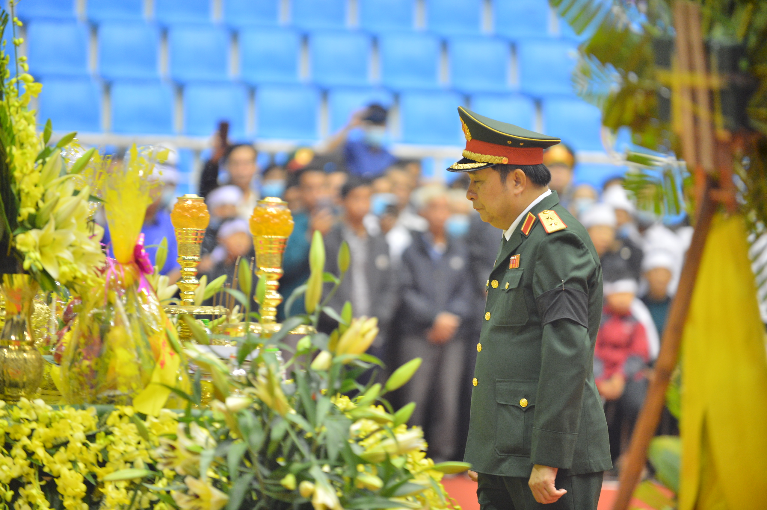 Phó tổng Tham mưu trưởng Trung tướng Phùng Sĩ Tấn cúi đầu trước anh linh 22 cán bộ, chiến sĩ hy sinh.
