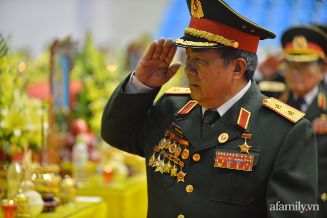 Di ảnh được các đồng chí trong bộ đại lễ phục trắng trân trọng.
