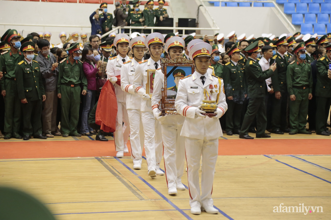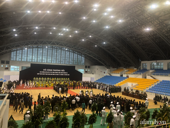 Sáng 22/10, từ rất sớm công tác chuẩn bị cho lễ truy điệu đã được hoàn tất. Thân nhân của các cán bộ, chiến sĩ đã hi sinh có mặt bên trong nhà thi đấu đa năng TP Đông Hà, Quảng Trị ai nấy đều không cầm được nước mắt xen lẫn tự hào đối với các anh hùng đã ngã xuống.