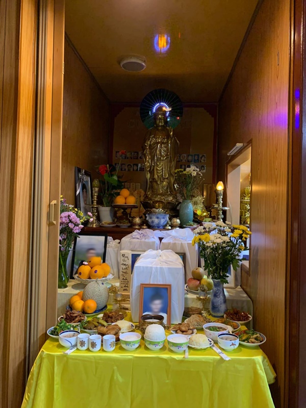 Trước đó, vào tối 11/8, lễ cầu siêu của du học sinh xấu số đã được tổ chức. Theo nguyện vọng của gia đình, sư thầy Thích Đức Trí - trụ trì chùa Hòa Lạc (ở thành phố Kobe, tỉnh Hyogo) đã đứng ra lo hậu sự cho em T.T.A.