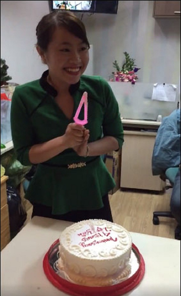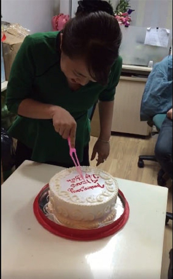 Kèm theo dòng trạng thái đó là một đoạn clip ngắn ghi lại cảnh cô nàng hạnh phúc cắt bánh, và rồi sung sướng với món quà bạn trai tặng.