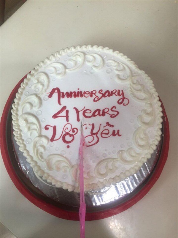 Trên chiếc bánh kem ghi dòng chữ kỷ niệm 4 năm chỉ là muốn tính đến quãng thời gian hai người đã bên nhau chứ ngày hôm đó không phải ngày kỷ niệm, cũng không nhân một dịp gì cả.