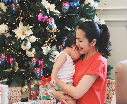 Đa số những hình ảnh khoe con của Tăng Thanh Hà và Louis Nguyễn đều từ sau lưng hoặc được che chắn kĩ lưỡng.