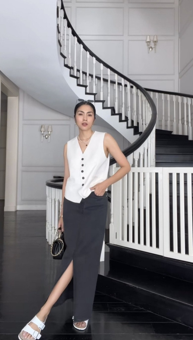 Điều đáng nói, dù đã là mẹ ba con, Tăng Thanh Hà vẫn duy trì vóc dáng cân đối, khiến những bộ cánh của cô càng thêm hoàn hảo. Chính sự giản dị nhưng tinh tế ấy đã biến cô trở thành hình mẫu phụ nữ hiện đại: thành đạt, thanh lịch và đầy khí chất.