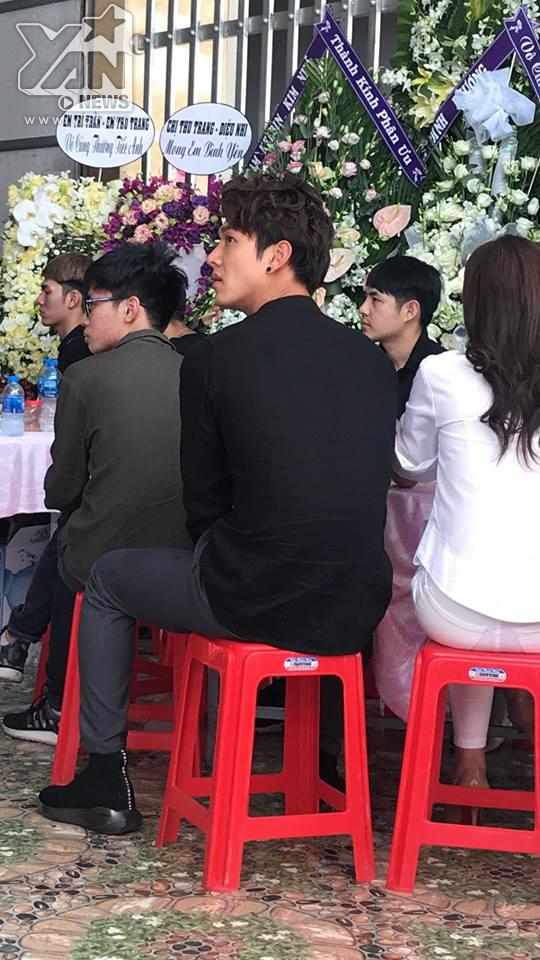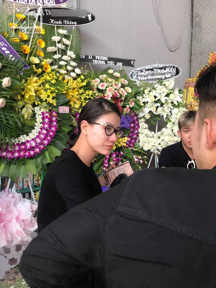Phạm Quỳnh Anh đến viếng và ngồi lặng lẽ ở đám tang. Nữ ca sĩ không thể giấu được cảm xúc trước sự ra đi này.