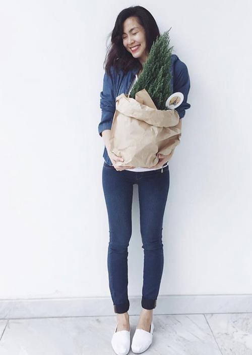 Nếu theo dõi phong cách thời trang của Tăng Thanh Hà, bạn sẽ nhanh chóng nhận ra cô rất yêu thích chất liệu denim và thường xuyên sử dụng chúng trong các hoạt động thường ngày như đến văn phòng, dạo phố cùng bạn bè hay đưa con đến trường...
