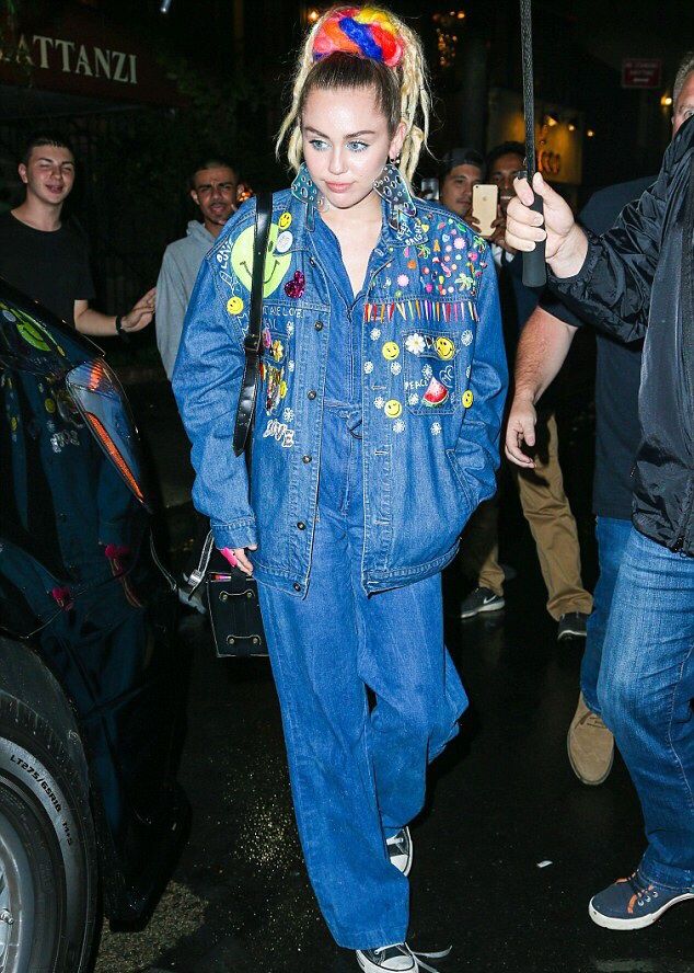 Cả cây denim của Miley Cyrus khiến cô trở nên năng động lạ thường. Một đôi giày sneaker tạo nên sự tươi mới và trẻ trung cho giọng ca nổi tiếng.