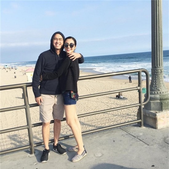 Tăng Thanh Hà khoe ảnh chụp cùng chồng trên một bãi biển tại Mỹ.