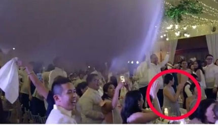 Trong đoạn clip hé lộ không khí tưng bừng của tiệc cưới chị gái Louis Nguyễn, Tăng Thanh Hà vô tình lọt vào ống kính máy quay. Người hâm mộ dễ dàng nhận thấy bụng của cô to lên thấy rõ.